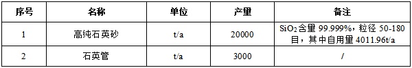 擬建項(xiàng)目總投資50000萬(wàn)元,主要建設(shè)高純石英砂、石英管生產(chǎn)線及附屬配套設(shè)施。生產(chǎn)過(guò)程主要以石英石毛料為原料,以鹽酸、氫氟酸等為輔助材料,通過(guò)破碎、篩分、浸酸、色選、焙燒、水淬、細(xì)碎、酸化提純、清洗、脫水、烘干、磁選、氯化、冷卻等工序生產(chǎn)高純石英砂;以自產(chǎn)高純石英砂等為原料,通過(guò)熔融、拉管、割管、脫羥等工序生產(chǎn)石英管。擬建項(xiàng)目預(yù)計(jì)投產(chǎn)日期為2024年9月,項(xiàng)目建成后將新增50個(gè)就業(yè)崗位,形成年產(chǎn) 20000噸高純石英砂和3000噸石英管的規(guī)模。