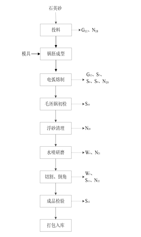 浮砂清理:冷卻后將附著在毛坯鍋外表面少量未熔的石英砂通過表面清理設(shè)備吸取去除,收集的石英砂回用于投料工序。