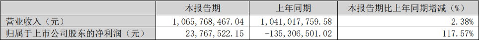 季報顯示2024年一季度共實現總收入約10.66億元,同比增加2.38%,凈利潤約2376.75萬元,同比增加117.57%。