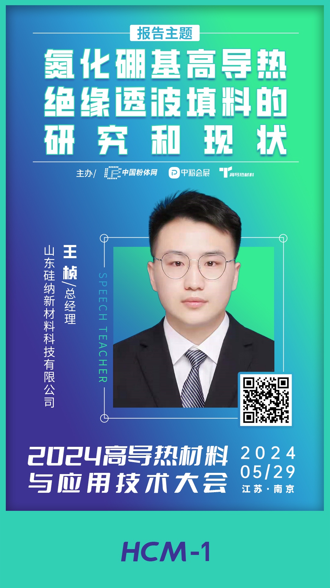 為促進導熱材料行業(yè)技術與產業(yè)發(fā)展進一步突破,2024年5月29日,中國粉體網(wǎng)將在南京舉辦2024高導熱材料與應用技術大會。大會邀請到山東硅納新材料科技有限公司總經(jīng)理王楨分享題為《氮化硼基高導熱絕緣透波填料的研究和現(xiàn)狀》的報告,屆時,王總將對導熱絕緣填料目前進展和現(xiàn)狀、高密度復合氮化硼基填料的研究和其高導熱透波特性進行詳細闡述,并將氮化硼基高導熱絕緣透波填料與常規(guī)產品進行對比。