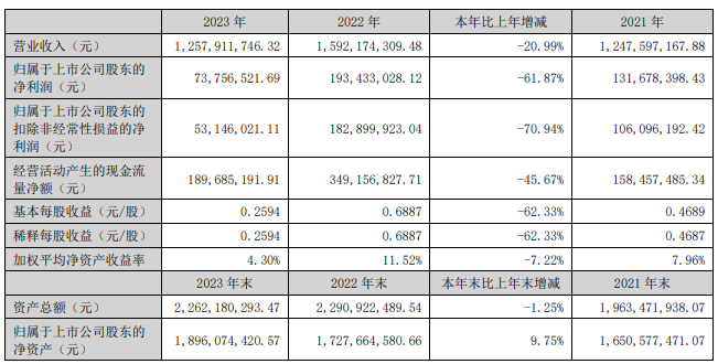 2023年,公司實現營業收入 4.34 億元,同比增長 2.74%,扣除非經常性損益后歸屬于上市公司股東的凈利潤 5374.19 萬元,同比增長 4.14%。