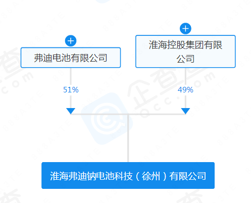 股權穿透顯示,該公司由比亞迪全資子公司弗迪電池有限公司、淮海控股集團有限公司共同持股,持股比例分別為51%、49%。