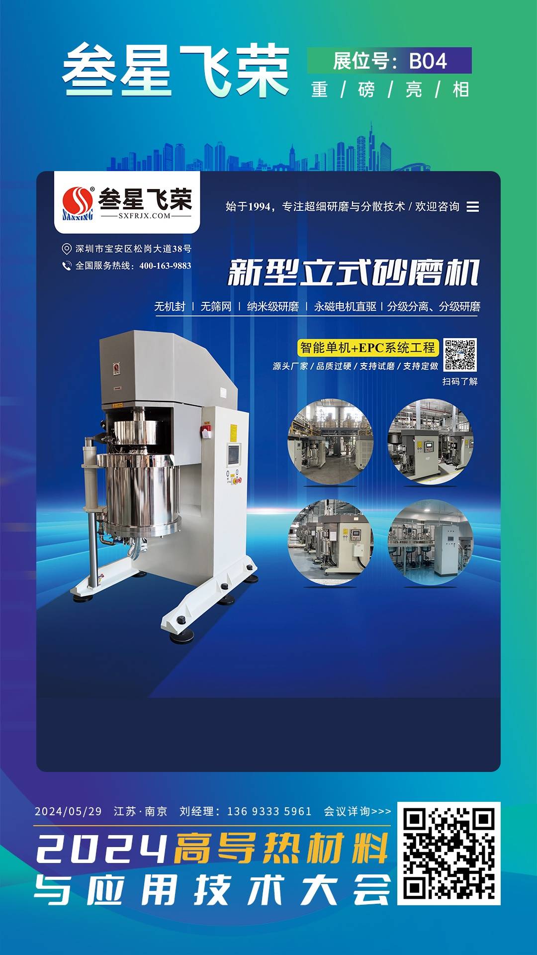 2024高導熱材料與應用技術交流大會將于2024年5月29日在南京舉辦。深圳市叁星飛榮機械有限公司作為參展單位邀請您共同出席。