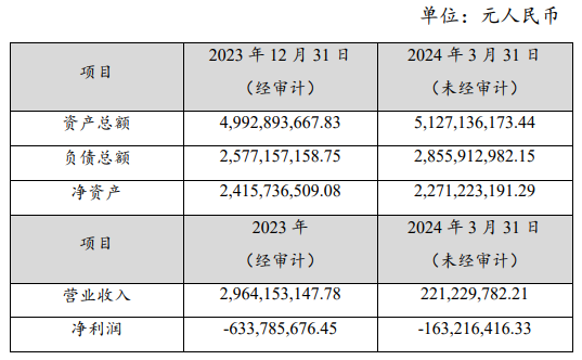 從業(yè)績表現(xiàn)看,安達科技業(yè)績承壓明顯。2023年,安達科技凈利潤虧損為6.34億元,2024年一季度凈虧損1.63億元。截至2024年3月31日,安達科技資產(chǎn)負債率為55.7%。