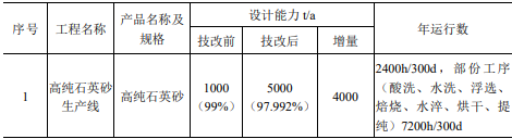 東海縣聯(lián)誠(chéng)光伏石英有限公司年產(chǎn)5000噸高純石英砂技改項(xiàng)目,通過國(guó)內(nèi)新購(gòu)置反應(yīng)釜、浮選機(jī)、變壓器等國(guó)產(chǎn)設(shè)備,同時(shí)對(duì)公用工程進(jìn)行適應(yīng)性技術(shù)改造。項(xiàng)目采用石英石→水洗→粗破→焙燒→水淬→粉碎→篩分→磁選→酸洗(在反應(yīng)釜中酸洗)→水洗→浮選→水洗→烘干→磁選→提純→成品等生產(chǎn)工藝。項(xiàng)目建成后可形成年產(chǎn)5000噸高純石英砂的生產(chǎn)能力。