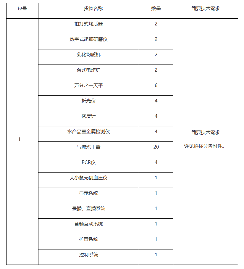 項目名稱:中國海洋大學數字式超細研磨儀、大小鼠無創血壓儀等設備采購項目