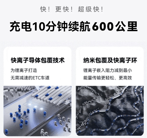 性能提升一步的背后是寧德時代在磷酸鐵鋰電池技術(shù)上的不斷突破。以“千公里級”純電續(xù)航為例,根據(jù)寧德時代國內(nèi)乘用車事業(yè)部CTO高煥介紹,神行PLUS在正極采用顆粒級配的技術(shù),將每一顆納米顆粒放在適當(dāng)?shù)奈恢茫瑢崿F(xiàn)了超高壓實密度。另外,在負(fù)極加入自主研發(fā)的三維蜂巢狀材料,提升了負(fù)極的能量密度,并有效控制了充放電時的體積膨脹。為了實現(xiàn)充電速度的飛躍,神行PLUS電池采用了快離子導(dǎo)體包覆、過渡金屬摻雜、新型納米包覆等技術(shù),讓正負(fù)極材料間的能量傳輸更為輕松高效。