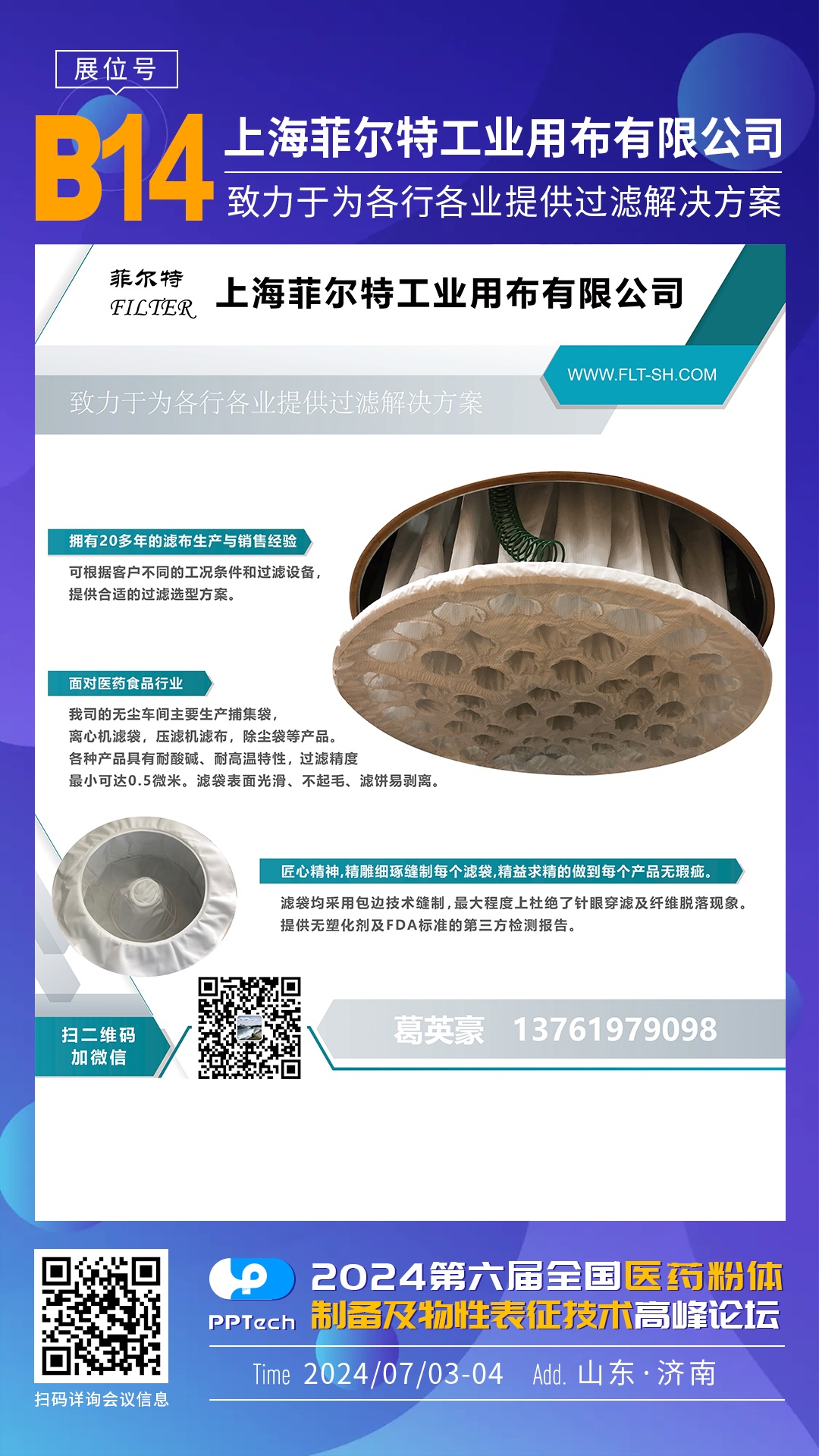 從第六屆全國醫(yī)藥粉體制備及物性表征技術(shù)高峰論壇組委會獲悉,本屆會議將于2024年7月3-4日在濟(jì)南舉辦。上海菲爾特工業(yè)用布有限公司作為參展單位邀請您共同出席。