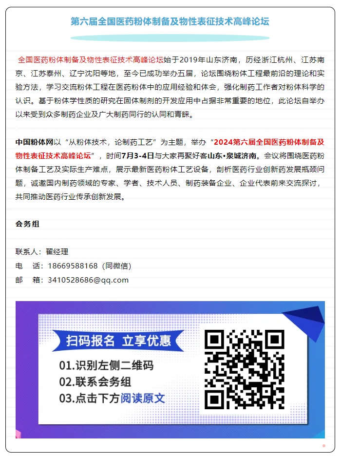 中國(guó)粉體網(wǎng)訊 全國(guó)醫(yī)藥粉體制備及物性表征技術(shù)高峰論壇始于2019年山東濟(jì)南,歷經(jīng)浙江杭州、江蘇南京、江蘇泰州、遼寧沈陽(yáng)等地,至今已成功舉辦五屆,論壇圍繞粉體工程最前沿的理論和實(shí)驗(yàn)方法,學(xué)習(xí)交流粉體工程在醫(yī)藥粉體中的應(yīng)用經(jīng)驗(yàn)和體會(huì),強(qiáng)化制藥工作者對(duì)粉體科學(xué)的認(rèn)識(shí)。基于粉體學(xué)性質(zhì)的研究在固體制劑的開(kāi)發(fā)應(yīng)用中占據(jù)非常重要的地位,此論壇自舉辦以來(lái)受到眾多制藥企業(yè)及廣大制藥同行的認(rèn)同和青睞。