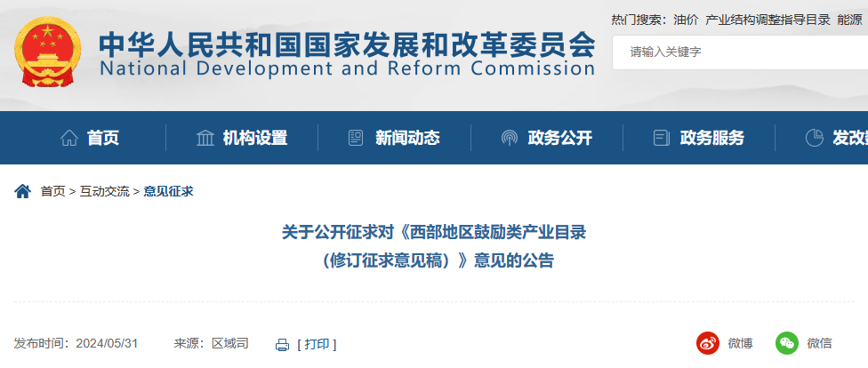 中國粉體網訊 近日,據國家發改委官網,為貫徹落實中共中央、國務院關于新時代推動西部大開發的決策部署,結合西部地區實際,國家發展改革委會同有關方面對《西部地區鼓勵類產業目錄(2020年本)》進行了修訂,形成了《西部地區鼓勵類產業目錄(修訂征求意見稿)》。