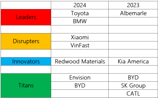 北京時間5月30日,美國《時代》(TIME)發布了2024年“全球100家最具影響力企業”(TIME 100 Most Influential Companies)。在新能源汽車和鋰電領域,全球共有七家企業入榜,其中,國內企業有比亞迪、小米以及遠景科技集團。比亞迪已連續四年上榜;小米、遠景2024年首次上榜;寧德時代2022-2023年上榜。值得一提的是,小米上榜的主要原因并非手機,而是其首款電動汽車SU7。