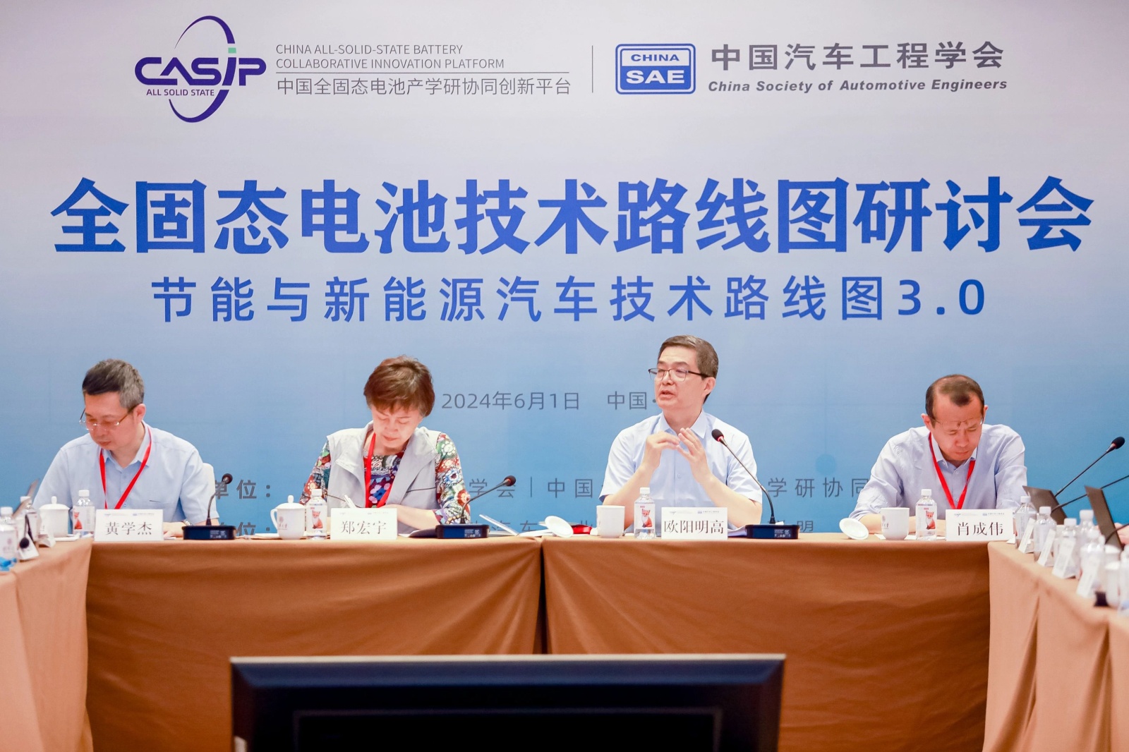 中國全固態電池產學研協同創新平臺(CASIP)與中國汽車工程學會聯合主辦的《節能與新能源汽車技術路線圖3.0》全固態電池技術路線圖研討會于6月1日在北京召開。會議由中國科學院院士、中國全固態電池產學研協同創新平臺理事長歐陽明高作引導發言。來自10余家頂尖高校,13家科研機構、6家行業組織及50余家電池全產業鏈及整車企業的160余名代表出席會議,共同就全固態電池技術路線展開深入探討與交流。