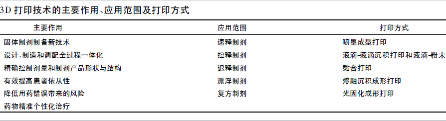 有關3D技術的主要作用、應用范圍及打印方式等簡要總結見表。