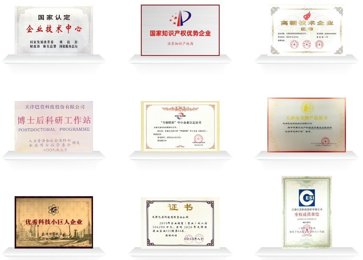 公司新型功能材料研究中心被認定為國家級技術中心及“天津市先進鋰離子電池材料企業重點實驗室”,研發產品填補了國內多項鋰離子電池材料技術的空白,多項產品技術性能達到國際先進水平。2022年,巴莫科技榮獲“天津市制造業單項冠軍企業”、國家專精特新“小巨人”企業、國家“工業產品綠色設計示范企業”等榮譽。