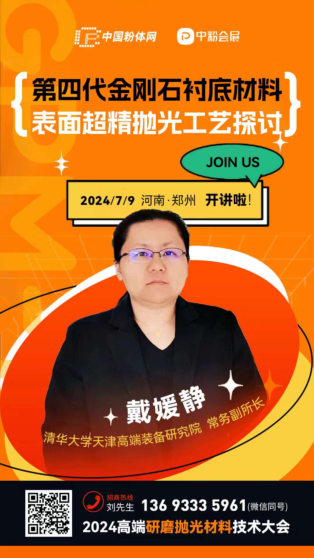 2024年7月9日,中國粉體網將在鄭州舉辦“2024高端研磨拋光材料技術大會”。屆時,清華大學天津高端裝備研究院潤滑技術研究所常務副所長戴媛靜將帶來《第四代金剛石襯底材料表面超精拋光工藝探討》的報告,戴院長將對金剛石襯底表面超精拋光機理與工藝進行探討,目標是實現金剛石晶圓的大尺寸、高效率、亞納米級高精度、全局平坦化超精制造。