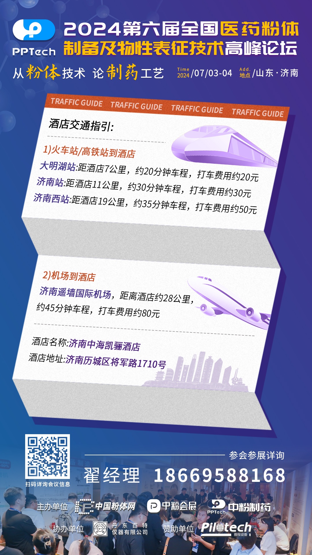第六屆全國(guó)醫(yī)藥粉體制備及物性表征高峰論壇將于2024年7月3-4日,在山東 濟(jì)南中海凱麗酒店舉辦,7月2號(hào)全天報(bào)到,會(huì)議日程及交通圖如下,請(qǐng)您安排好行程,按時(shí)參會(huì)。