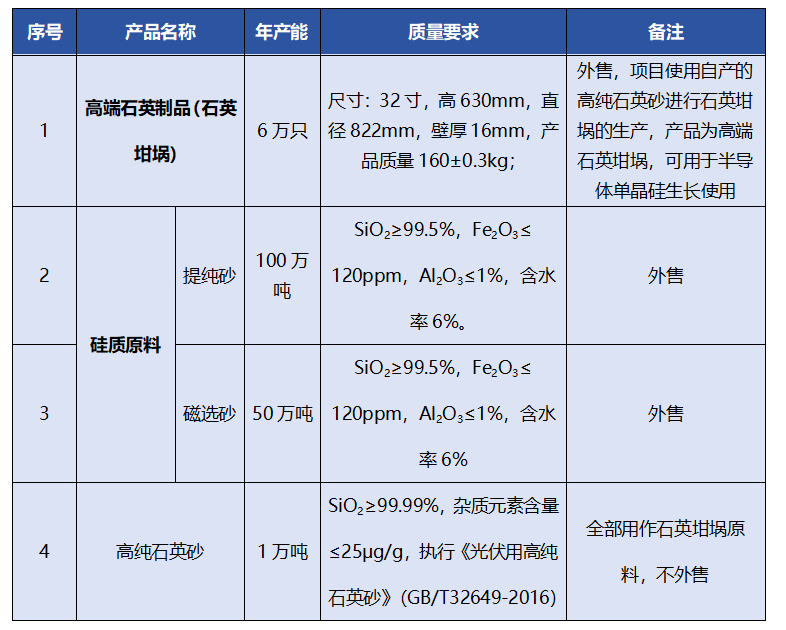 安徽奕鑫新材料有限公司年產6萬只石英坩堝及硅質原料項目總投資6.5億元,新建酸洗車間、海洋砂生產車間、高純石英砂生產車間、石英坩堝生產車間等配套基礎設施建筑,項目建成后,生產6萬只石英坩堝及150萬噸硅質原料,其中硅質原料包括100萬噸提純砂、50萬噸磁選砂,及石英坩堝原料1萬噸的高純石英砂。