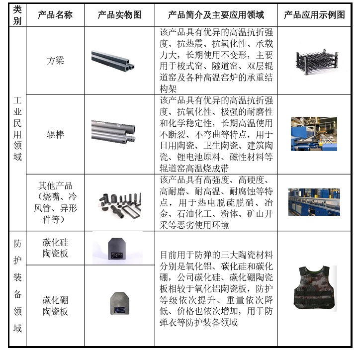 招股書顯示,根據中國陶瓷工業協會的數據,在工業民用碳化硅特種陶瓷領域,2020年、2022年公司的國內市場排名均為第3名;在碳化硼、碳化硅防護陶瓷板領域,2020年-2022年公司的國內市場排名均為第1名。