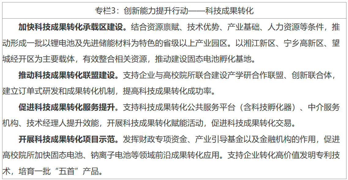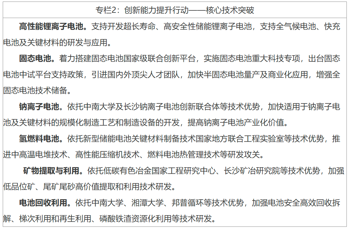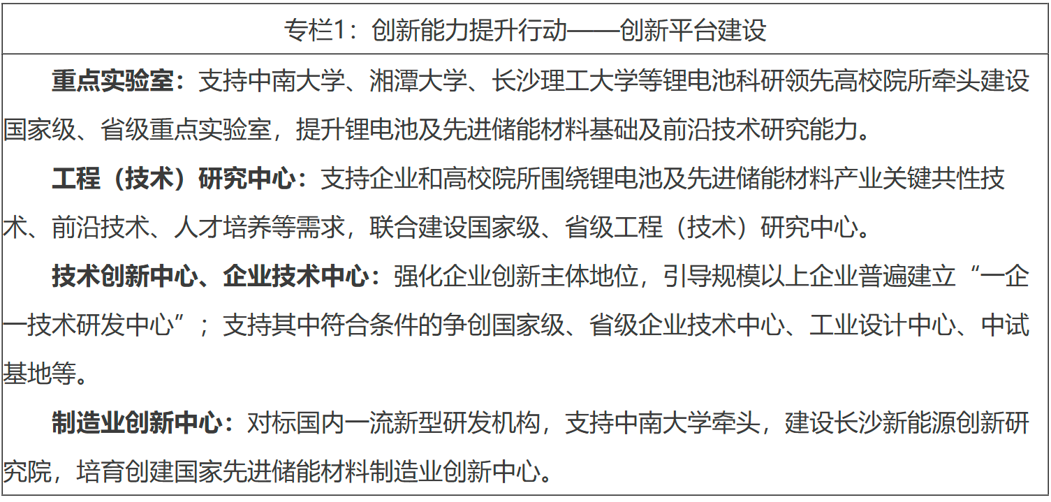 圍繞固態電池等新型電池及新一代儲能材料“研試產用”四大階段,支持企業和高校院所聯合或自主建設一批高水平研發平臺,創建國家級、省級重點實驗室、工程(技術)研究中心、技術創新中心、企業技術中心、制造業創新中心。支持先進儲能材料國家工程研究中心、國家能源金屬資源與新材料重點實驗室等現有創新平臺加大研發投入,加強“外引內聯”,發揮對鋰電池及先進儲能材料產業的創新引領和技術賦能作用。