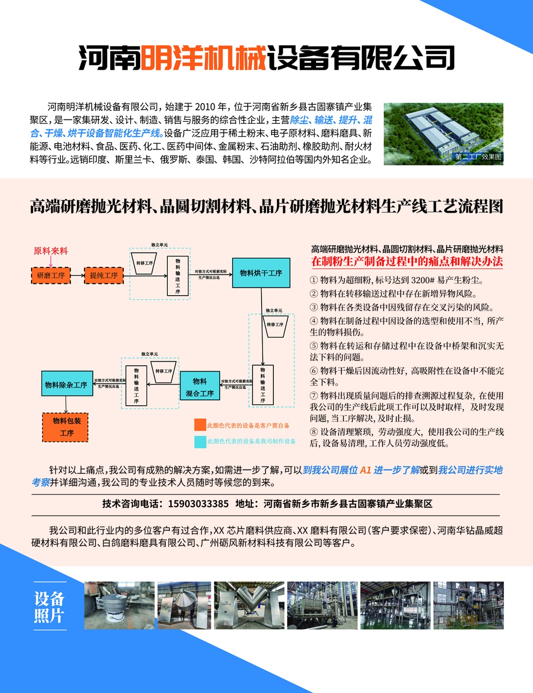 2024高端研磨拋光材料技術大會將于2024年7月9日在鄭州舉辦。河南明洋機械設備有限公司作為參展單位邀請您共同出席。