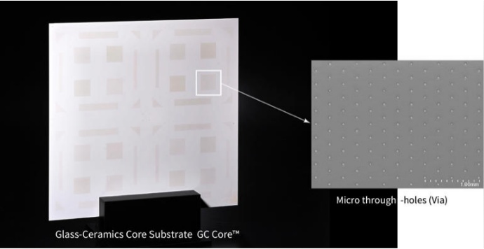 近日,日本電氣硝子宣布推出新型半導(dǎo)體基板材料 GC(即Glass-Ceramics“玻璃-陶瓷” )Core。電氣硝子此次開(kāi)發(fā)出的 GC Core 基板芯材由玻璃粉末和陶瓷粉末低溫共燒而成。電氣硝子已成功生產(chǎn)了 300*300mm 方形 GC Core 基板,目標(biāo)到 2024 年底將這一尺寸擴(kuò)大到 510*510mm。