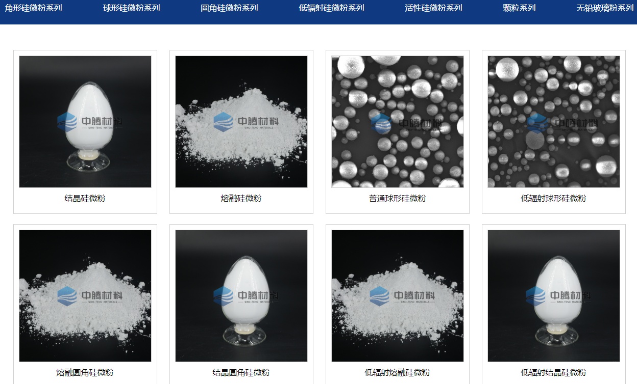 自2001年公司首座工廠投產伊始,一直致力于二氧化硅材料性能提高的研發和生產,公司產品分為結晶型和熔融無定型兩大類;以角形硅微粉系列、球形硅微粉系列、圓角硅微粉系列、低輻射硅微粉系列、活性硅微粉系列、顆粒系列和無鉛玻璃粉系列為主營產品,主要用于大規模集成電路、覆銅板、環氧模塑料、電子灌封膠、電氣絕緣部件、高溫石英技術陶瓷、光伏坩堝,熔模鑄造、耐火材料、有機硅、涂料、膠黏劑、熱界面材料、航空航天及石油等各種領域,已經穩定銷售于國內及全球二十多個國家和地區。