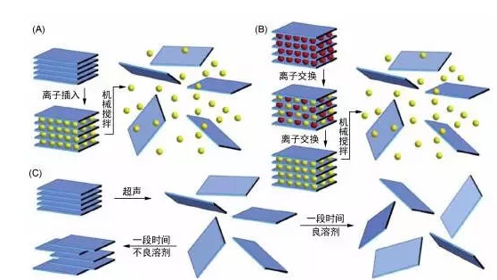 “自上而下”法包括機械剝離法和化學(xué)剝離法、液相剝離法等。具體如下: