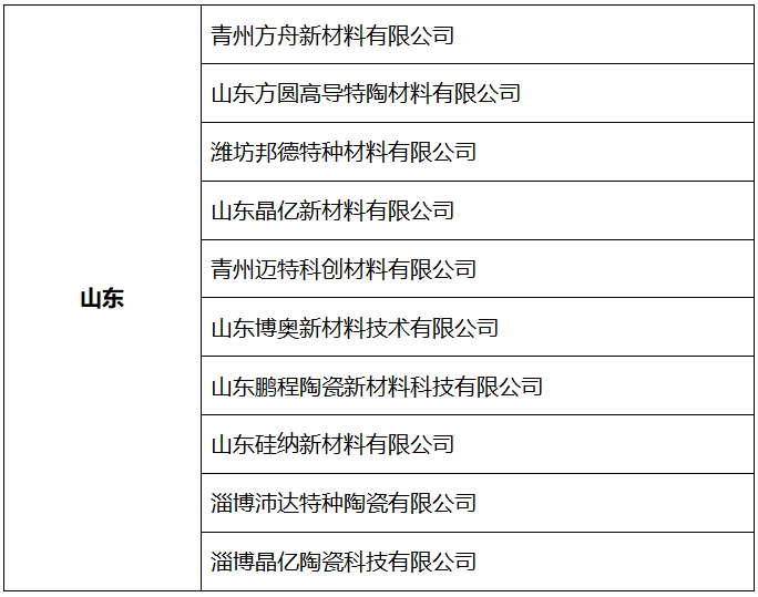 山東是工業陶瓷大省,陶瓷生產歷史可以追溯到新石器時代,尤其是北方瓷都——淄博,陶瓷文化源遠流長,因此積累了豐富的制陶經驗和技術。深厚的陶瓷文化與制陶基礎無疑為氮化硼等先進陶瓷的發展打下了深厚基礎。山東氮化硼企業主要分布在濰坊和淄博兩個城市,部分重點企業如下: