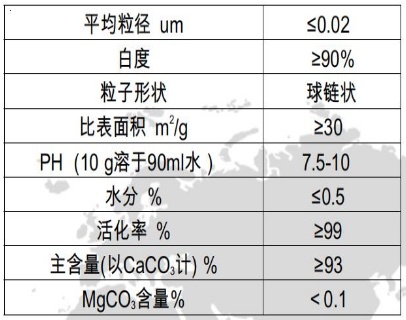 一款晶形為球鏈狀的納米碳酸鈣,該產品超高的比表和較小的粒徑,可為下游產品提供極其優異的補強等物理性能。此晶形理論上在補強、耐屈服、觸變、流變等性能上超出別的晶形的納米碳酸鈣,在業內也屬于高附加值的精細化產品。