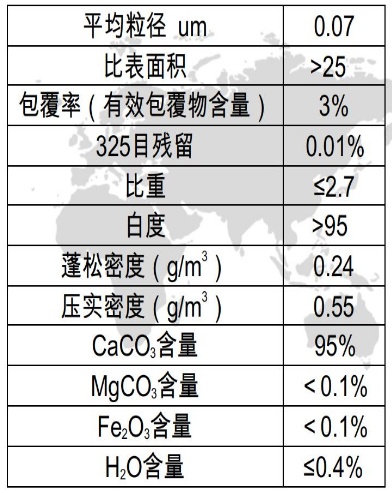 一款表面處理的納米級輕質碳酸鈣,立方體型顆料,窄粒徑分布,廣泛用于硅酮膠、環氧膠、聚氨酸膠、PVC塑溶膠、MS膠、PS。可部分替代氣相二氧化硅,尤其適用于聚氨酯樹脂,不產生氣泡,提供良好的力學性能和觸變性能,具有很好的降本補強效果。