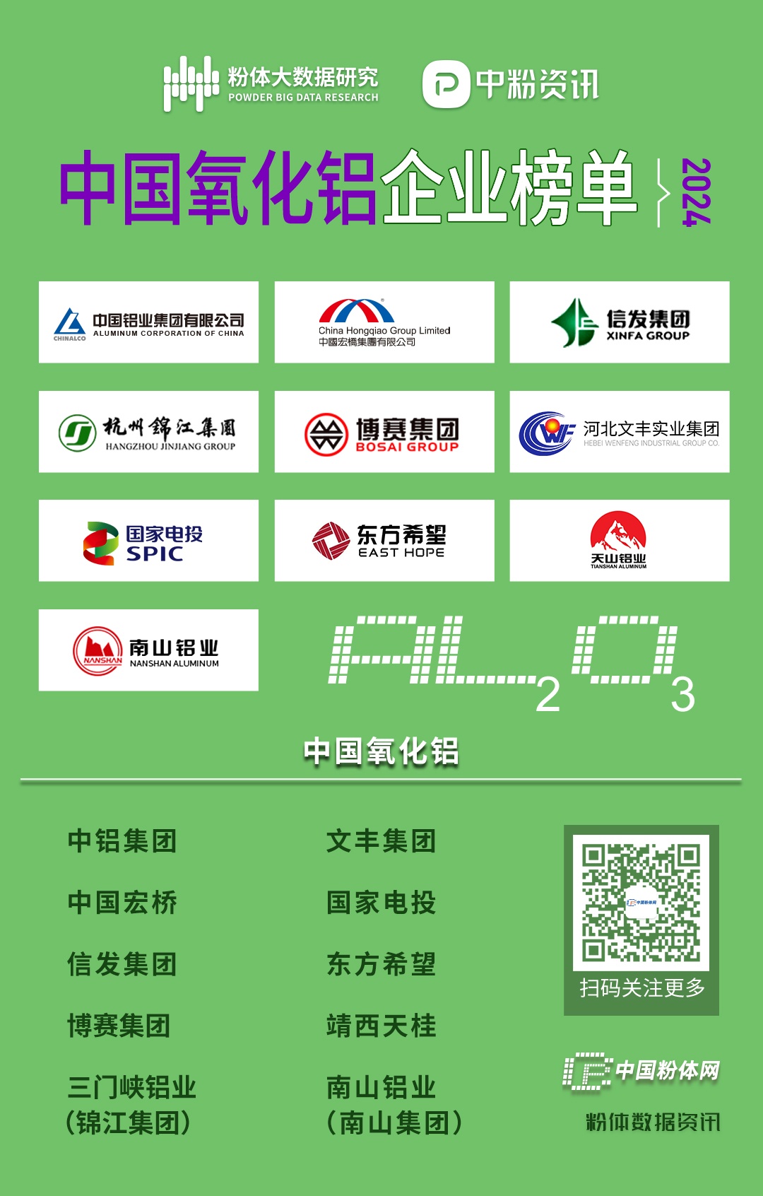 近年來,隨著國民經濟的發展,我國已成為全球最大氧化鋁生產和消費國。據國際鋁業協會數據顯示,2023年全球氧化鋁產量累計達到1.419億噸,前一年同期為1.422億噸。2023年中國氧化鋁產量累計達到8238萬噸,同比增長3.28%,占全球產量的58%。以下為國內10家主要氧化鋁生產企業。