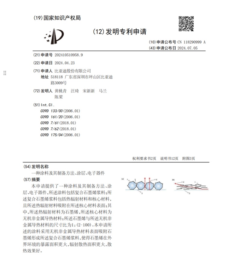 3.比亞迪申請一項石墨烯散熱涂料相關專利