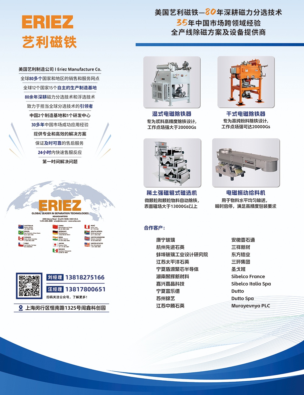 上海福萌機電科技有限公司(FOREMOST)是藝利磁鐵(ERIEZ Magnetics)國內銷售及服務公司,位于上海閔行區漕河涇,專業銷售高端磁選機,除鐵器,振動給料機,金屬探測器,渦流分選機及磁力自動化等先進設備。80多年來積累的行業經驗為客戶提供磁選,物料輸送及金屬分選的全產線專業解決方案。