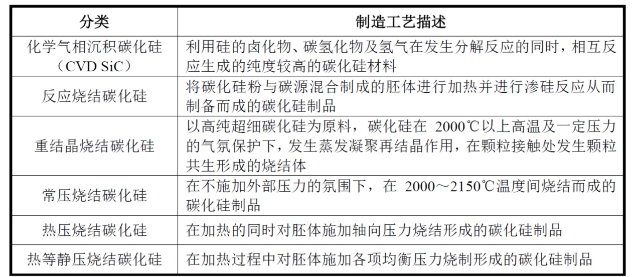 碳化硅陶瓷具有高硬度、高熔點、高耐磨性和耐腐蝕性,以及優良的抗氧化性、高溫強度、化學穩定性、抗熱震性、導熱性和氣密性等優點,在半導體領域中,碳化硅陶瓷材料主要應用于集成電路制造關鍵裝備中,如研磨拋光、外延/氧化/擴散等熱處理、光刻、沉積、刻蝕,離子注入等半導體制程中都得到了廣泛應用。
