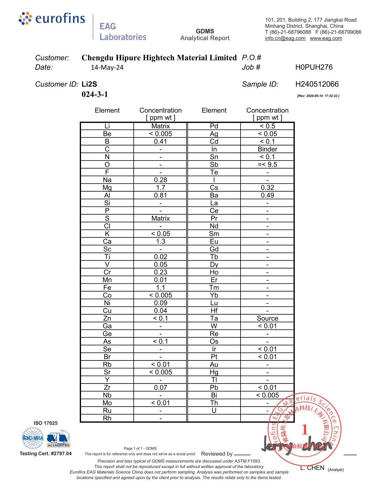 Impurity analysis of high purity lithium sulfide(ICP--OES)