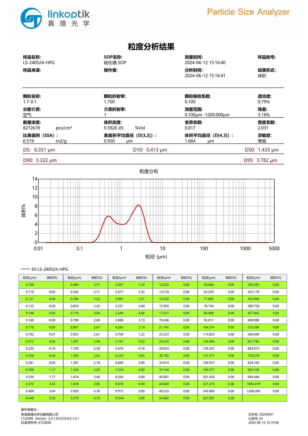 Particle size analysis of high purity lithium sulfide