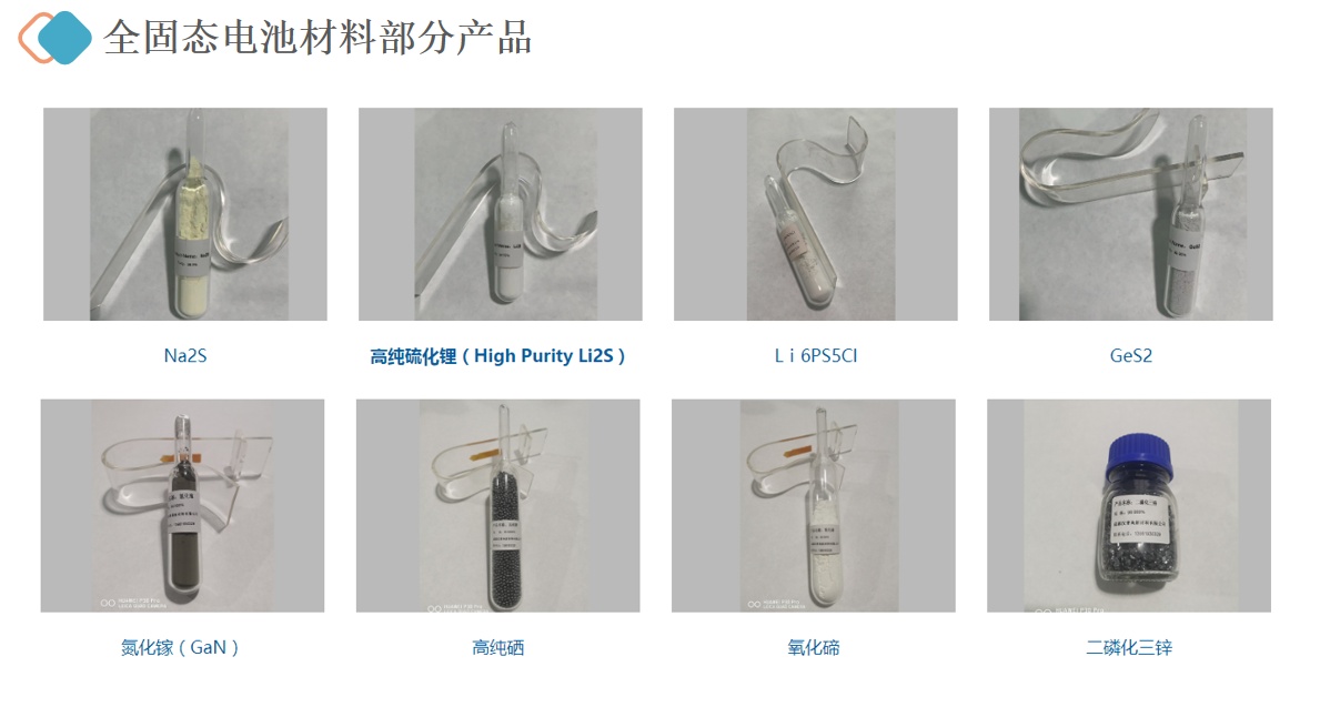 固態(tài)電解質(zhì)材料高純硫化鋰純度高99.99%以上、二硫化鍺、二硫化錫、五硫化二磷、無(wú)水硫化鈉等材料已產(chǎn)業(yè)化生產(chǎn),目前,我公司高純硫化鋰產(chǎn)能可達(dá)50噸,我們可根據(jù)市場(chǎng)情況,隨時(shí)擴(kuò)大產(chǎn)能,滿足國(guó)內(nèi)外需求。我們可根據(jù)客戶的要求,定制各種不同原子比的多元化合物材料。