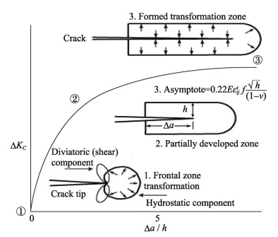圖2相變區中裂紋擴展伴隨韌性提高的示意圖
