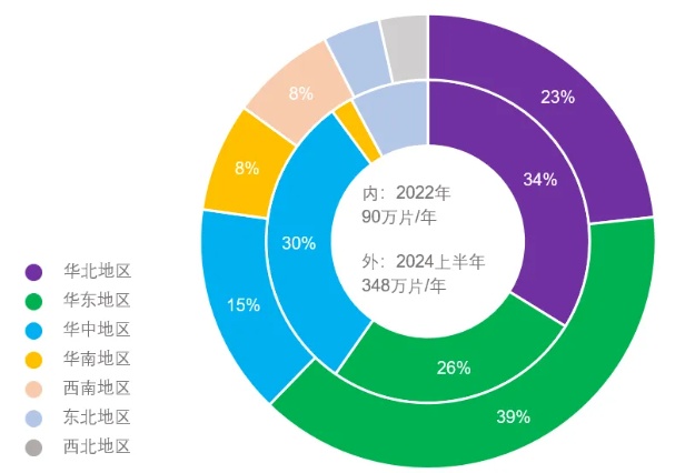 2022和2024上半年中國碳化硅襯底產(chǎn)能區(qū)域分布