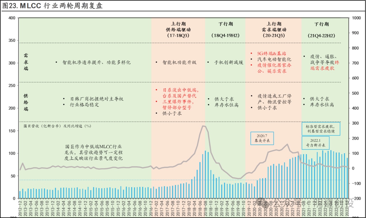 如果我們把時(shí)間線拉長,其實(shí)MLCC從2017年以來,大致經(jīng)歷了兩輪周期。