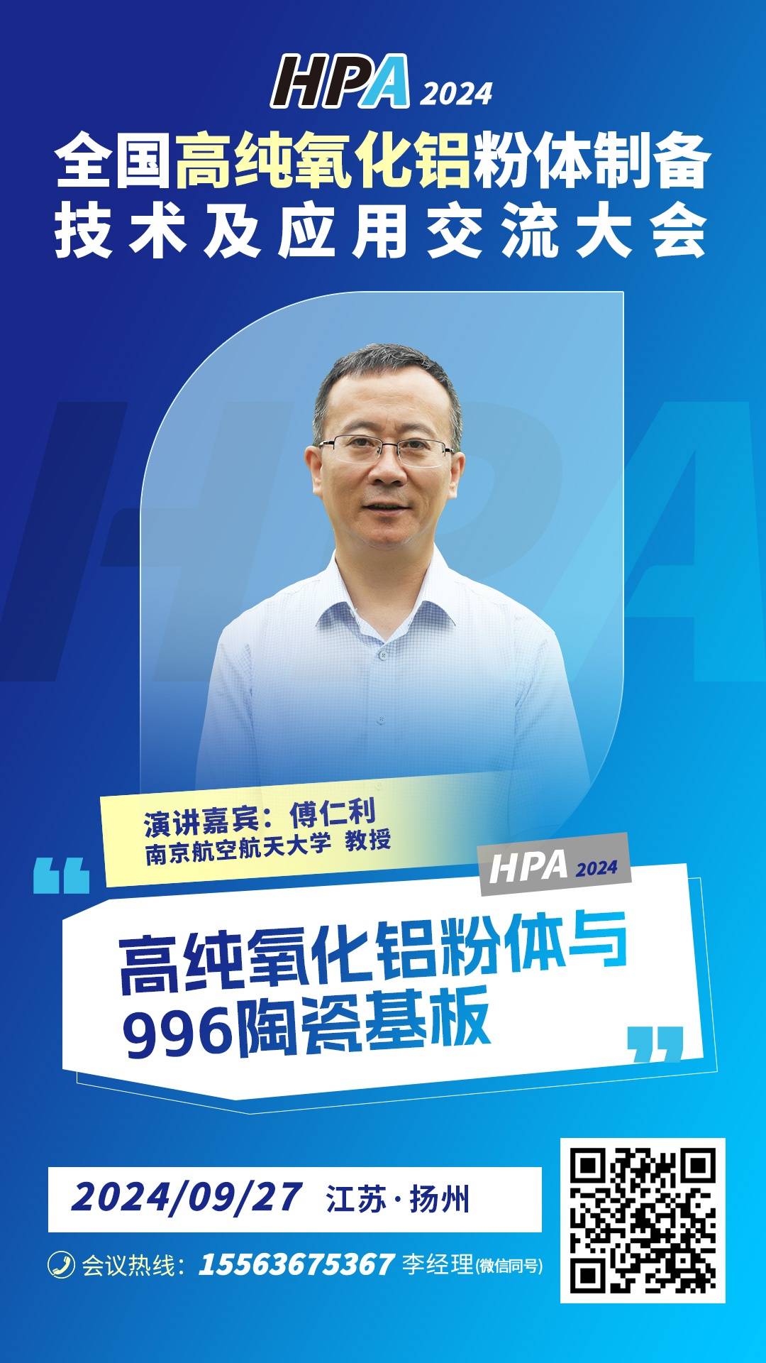 9月27日,中國(guó)粉體網(wǎng)將在江蘇·揚(yáng)州舉辦2024全國(guó)高純氧化鋁粉體制備技術(shù)及應(yīng)用交流大會(huì)。鑒于高純超細(xì)氧化鋁粉體是解決現(xiàn)有陶瓷基板燒結(jié)成型裝備制備996陶瓷的關(guān)鍵技術(shù),我們邀請(qǐng)到了南京航空航天大學(xué)傅仁利教授現(xiàn)場(chǎng)作《高純氧化鋁粉體與996陶瓷基板》報(bào)告,屆時(shí),傅仁利教授將詳細(xì)闡述高純氧化鋁陶瓷粉體與996陶瓷基板燒結(jié)性能之間的研究進(jìn)展。