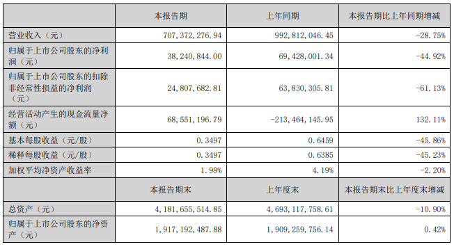 中國粉體網訊 8月11日,上海市翔豐華科技股份有限公司(簡稱:翔豐華)發布了2024年半年度報告,報告顯示,翔豐華上半年營業收入約7.07億元,同比減少28.75%,歸屬上市公司股東的凈利潤約3824.08萬元,同比下降44.92%;扣非凈利潤2480.77萬元,同比下降61.13%。其中,翔豐華的負極材料營業收入約7.06億元,同比下降28.51% ,毛利率同比下降3.14%。