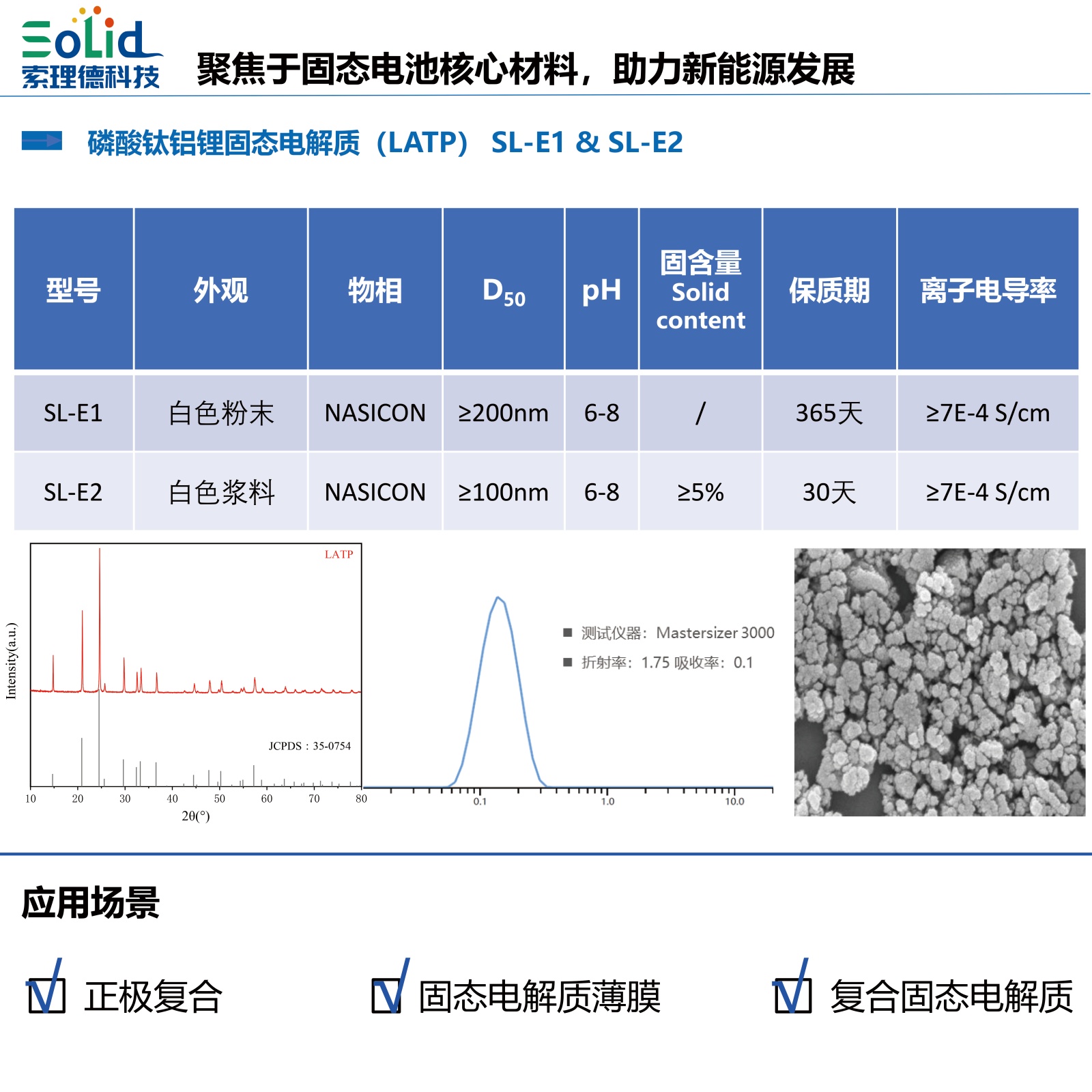 索理德新材料是一家專注在下一代鋰電核心材料包括硅基負極材料、固態電解質材料等研發、生產、應用和銷售的國家高新技術企業。索理德的硅基產品包括硅碳、硅氧全系列硅基負極業務,并已經實現批量出貨,硅碳負極利用行業首創技術解決了硅材料膨脹大、穩定性差的應用難題,為大規模應用奠定了基礎。索理德本次A輪融資將會推進多孔硅碳產業化加速。除了加速多孔硅碳產業化,索理德也在陸續開發適配于半固態與全固態電池體系的材料產品推入市場。未來,隨著固態電池的市場化應用加速,索理德有望受益于行業實現快速成長。