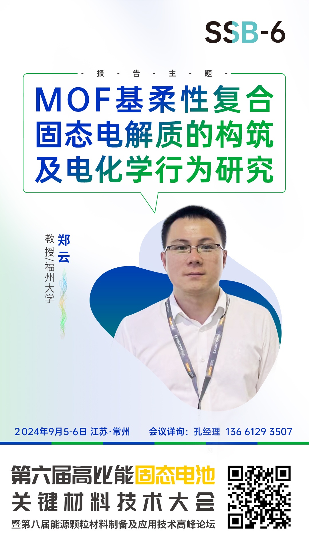 針對固態電池相關的技術、材料、市場及產業等方面的問題,中國粉體網將于2024年9月5-6日在常州舉辦第六屆高比能固態電池關鍵材料技術大會。為致力于固態電池技術開發的企業,科研院校,以及電動車、儲能、特種應用等終端企業提供信息交流的平臺,開展產、學、研合作,共同推動行業發展。屆時,來自福州大學的鄭云教授將作題為《MOF基柔性復合固態電解質的構筑及電化學行為研究》。