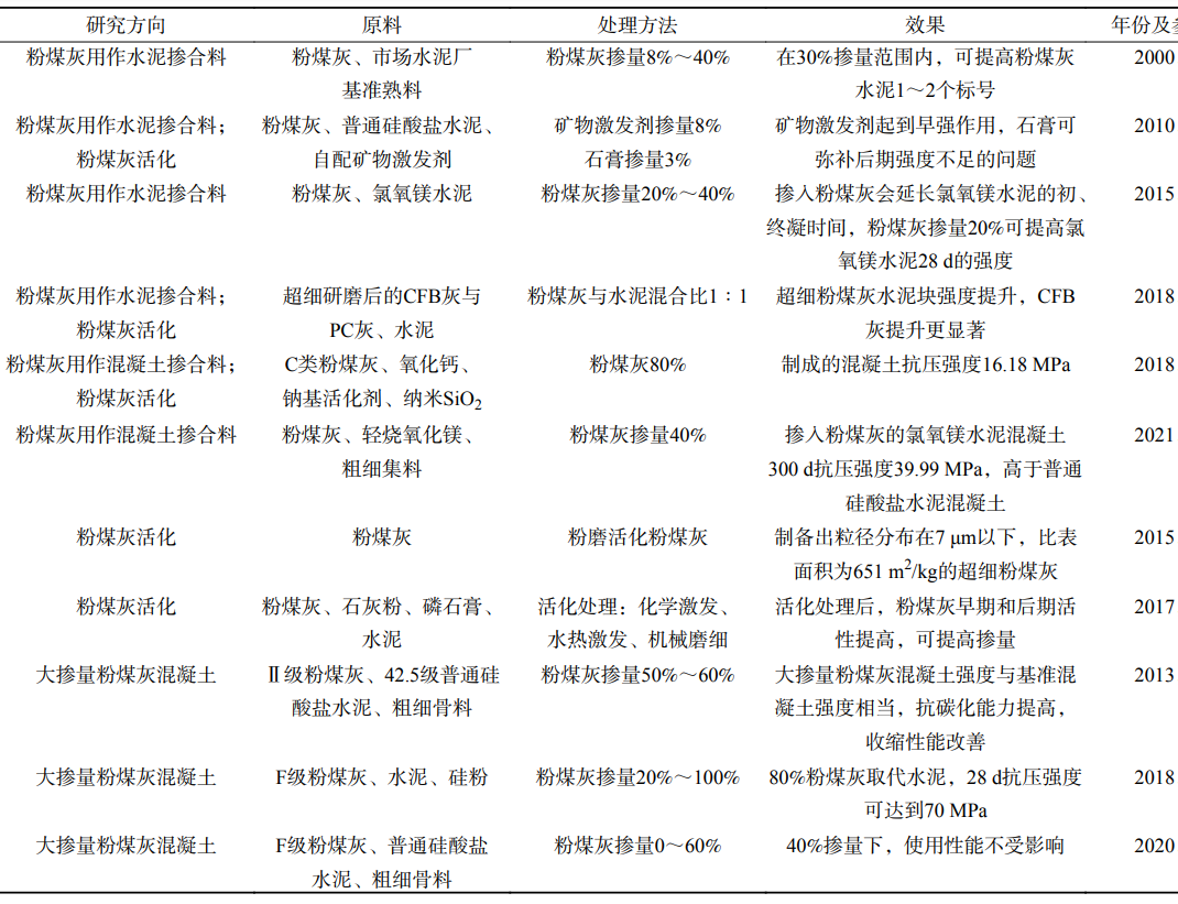 粉煤灰用作水泥或混凝土摻合料研究現狀