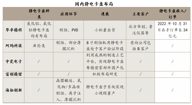 當前國內企業在多應用領域經驗、特定產品開發和產業化以及大規模生產制造能力等方面與國外領先廠商仍有較大或一定差距,但是國內廠商在部分產品線的部分核心指標已達到全球主流水平,正逐步實現突破。國內多家廠商積極布局如靜電卡盤和陶瓷加熱盤等高端陶瓷零部件產品,以加速高端陶瓷零部件的國產替代。