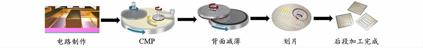 背面減薄:晶圓內電路制作完成后,使用背面減薄砂輪減小晶圓厚度,減薄有利 于芯片的散熱提高其壽命和縮小體積。