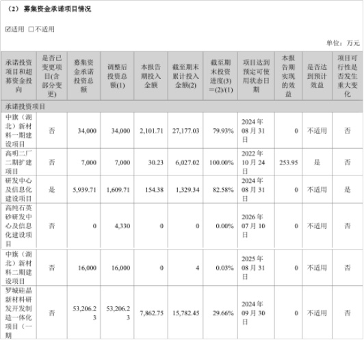 主要包括高純石英砂、超純超細硅微粉、TFT石英粉及石英板材砂和粉。公司生產的高純石英砂主要作為光伏級石英坩堝的外、中、內層原料;超純超細硅微粉廣泛應用于電子封裝材料、半導體、高端涂料、精密鑄造制造等高科技領域;TFT石英粉廣泛應用于薄膜晶體管液晶顯示器(TFT-LCD);石英板材砂和粉主要應用于生產石英石板材。公司高純石英砂項目已于2024年第二季度陸續投產并實現銷售;截至報告期末,公司硅微粉、TFT石英粉及石英板材砂和粉尚未投產。未來,公司將在廣西建立年產能達百萬噸的大型生產基地,在湖北黃岡基地實現1.6萬噸高純石英砂的產能,具備規模化生產能力,降低單位成本,增強市場議價能力,能夠快速響應市場需求,滿足大規模訂單的生產需要。