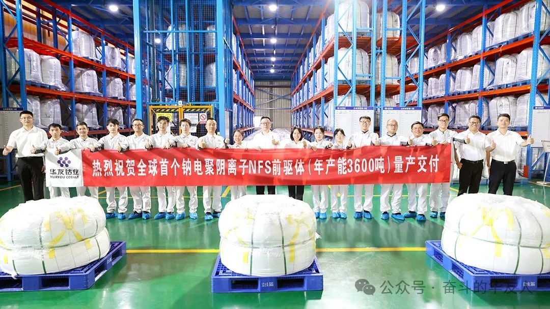 8月28日,華友新材料全球首款鈉電聚陰離子NFS前驅(qū)體(年產(chǎn)能3600噸)量產(chǎn)品順利下線交付。