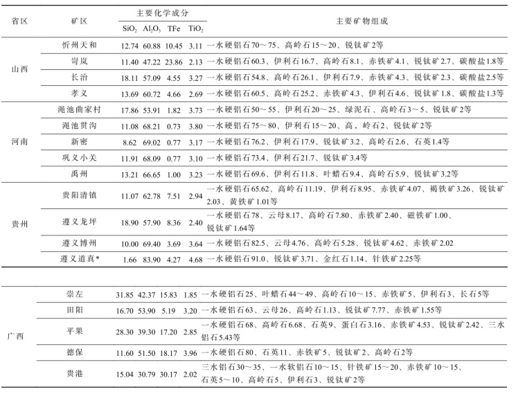 我國(guó)主要產(chǎn)區(qū)的鋁土礦主要化學(xué)組成及礦物組成